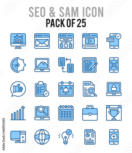 25 SEO And SAM. Two Color icons Pack. vector illustration.