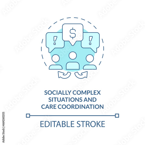 2D editable thin line icon socially complex situations and care coordination concept, isolated vector, blue illustration representing arena.