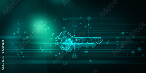 2d illustration digital abstract technology digital future cyber security key