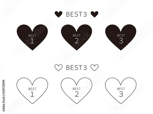 黒色ハートマークのベスト3ランキング順位アイコンセット