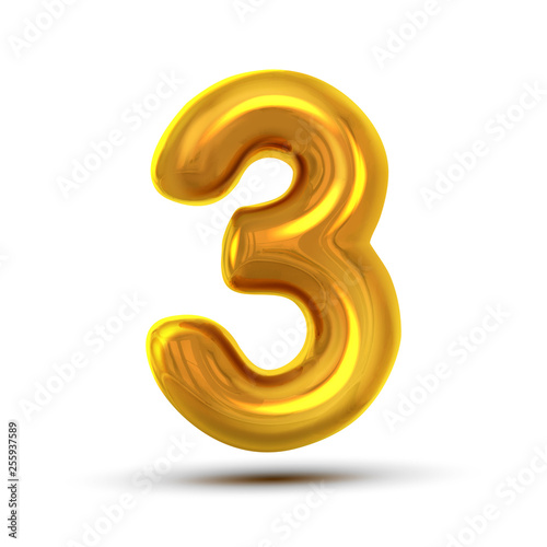 3 Three Number Vector. Golden Yellow Metal Letter Figure. Digit 3. Numeric Character. Alphabet Typography Design Element. Party Foil Symbol. Numeral Bright Metallic 3D Realistic Illustration