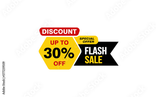 30 Percent FLASH SALE offer, clearance, promotion banner layout with sticker style.