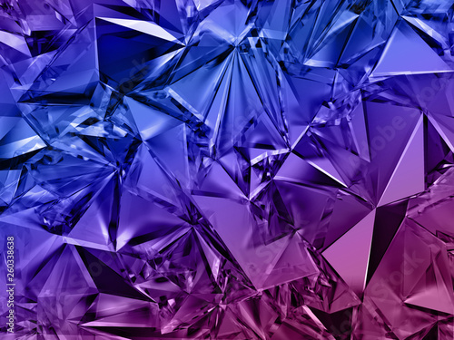 3d abstract crystal background, blue purple fashion wallpaper, faceted geometrical texture