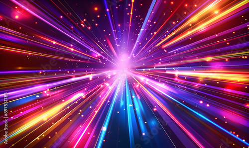 3d Abstract neon background with glowing blue purple lines dark room Neon Abstract Concept