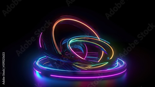 3d and 2d rendering, colorful neon lines, glowing in the dark. minimalistic, futuristic and abstract geometric background wallpaper. Ultraviolet spectrum. Cyber space.. Generative AI