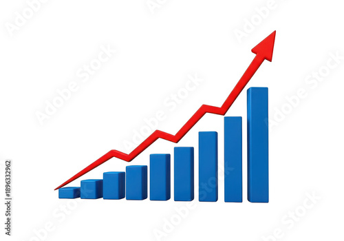 three-dimensional, bar chart, graph, statistic, datum, analysis, growth, increase, rising, arrow, red, blue, business, finance, success, isolated, cut-out