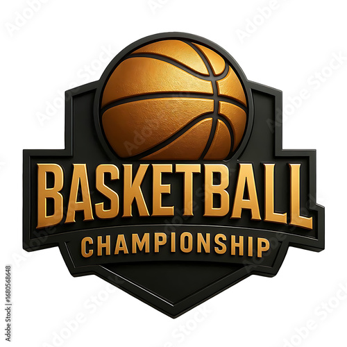 basketball, championship, logotype, emblem, badge, tournament, sport, fast, team, league, competition, game, ball, three-dimensional, metallic, gold, black, shield, crest, icon, design, branding, modern, glossy, render, isolated, event, athletic, playoff, victory
