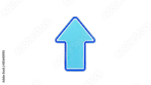 3D Blue arrow pointing up with reflective border on transparent background