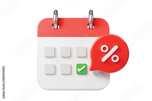 3d calendar discount alert icon. sale schedule concept. minimal cartoon reminder message badge for ecommerce promo. isolated on white transparent background. 3d render.