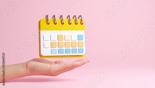 3D calendar icon floating above hand