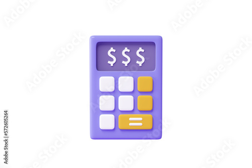 3d Cartoon minimal Blue Purple calculator concept of financial management. financial planning. Math Device. Math Tool. Calculating financial risk planning, copy space on isolat background 3d rendering