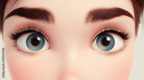 3D Cartoon of Young Woman s Eyes Eye Care Theme