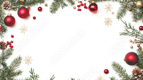 3D christmas tree ornaments christmas wreath balls pine berries red green white background. close up fashion graphic design material with copy space