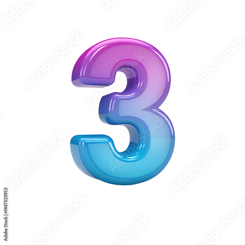 3d glossy number 3 blue purple gradient color isolated on white background png