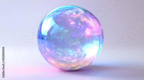 3D Holographic Discount Bubble Concept: Shimmering Translucent Bubble Floating, Showcasing Product Information & Prices - Future of Sales Promotions, Icon on White Background