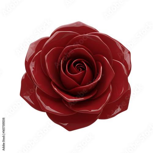 3d icon of beautiful red rose with glossy petals isolated on transparent background