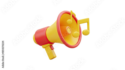3D Icon: Yellow & Red Megaphone with Music Notes