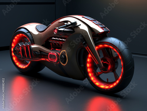 3D illustration of a future motorcycle equipped with the latest features. Aerodynamic sports style.