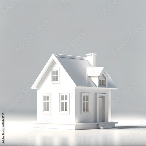 3D model a white house on white background, Ai Generative