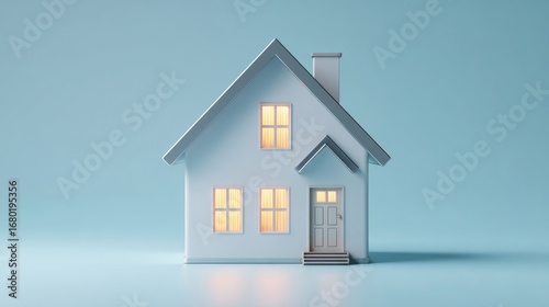 house, home, miniature, three-dimensional, model, light, warm, white, simple, design, architecture, small, building, residential, interior, exterior, front, illuminated, cosy, light bulb, warmth, modern, contemporary, representation, structure, property, perspective, rendering, geometric, simplicity, clean, gentle, pastel, roof, window, door, chimney, footed, studio, digital, illustration