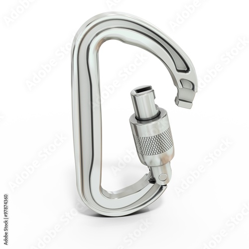 three-dimensional, aluminium, snap-hook, climb, climbing, clip, closeup, equipment, extreme, fastener, isolated, lock, macro, metal, mountain, mountaineering, rock, safety, sport, strength, strong, attaching, tool, white, concept, detailed