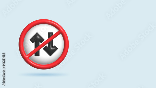 3d realistic Illustration dont Two Way Sign or one way with white and red frame