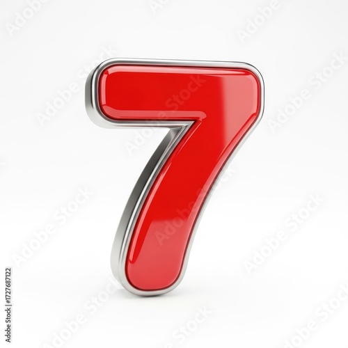three-dimensional, number, 7, red, glossy, shiny, metallic, silver, outline, background, render, digit, graphic, design, element, symbol, numeral