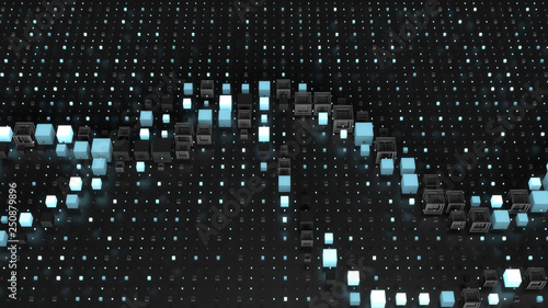 bright, glow, three-dimensional, cube, abstract, background, cube, technology, design, futuristic, modern, shape, science, digital, square, render, concept, block, graphic, structure, box, business, block, perspective, pattern, network, space, black, tech, geometric, datum, rendering, connection, construction, object, chaotic, particle, element, dark, statistic, artificial intelligence, graph, blue