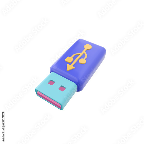 3d render illustration flash drive. Modern trendy design. Icon for app and web. Isolated on white background.