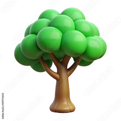 3d render of a cartoon tree on transparent background