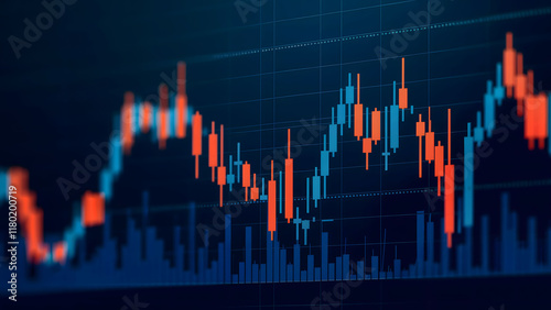 3D Render of Financial Trading Chart with Candlestick Patterns and Trend Lines