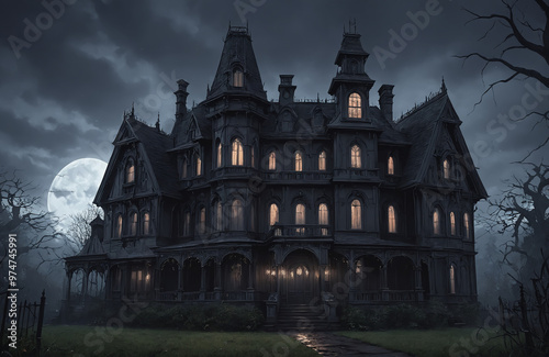 halloween, night, skittish, eerie, atmosphere, dark, gothic, horror, fright, october, festive, decoration, haunted, scarey, silhouette, mystery, fantasy, moonlight, shadow, architecture, creepy, ghost, sorcerer, pumpkin, thrill, imagination, autumn