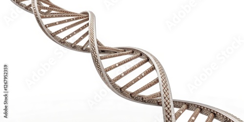 3D Render of Intricate DNA Helix Isolated on White Background, Genetics, Molecular Biology