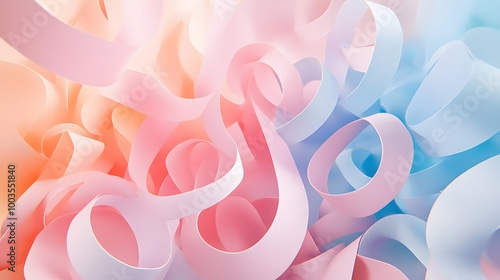 3d render, paper ribbon rolls, abstract shapes, fashion background, swirl, pastel neon scrolls, curl, spiral, cylinder.