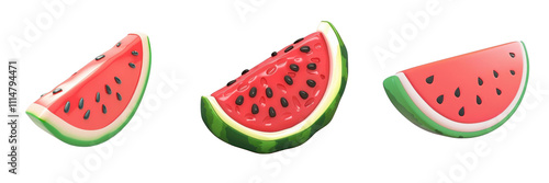 three-dimensional, watermelon, fruit, summer, food, fresh, healthy, slice, juicy, green, red, tropical, sweet, dessert, vitamin, organic, nature, snack, decorative, picnic, bright