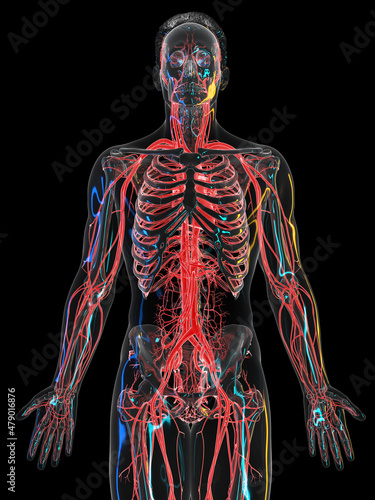 three-dimensional, illustration, medicals, science, rendering, artwork, skeleton, skeletal, anatomy, anatomical, on black, glossy, blue, nubes, aorta, artery, vein, vascular, vessel, blood, cardiac, cardiology, coronary, atrium, pulmonary, circulatory, cardiovascular, heartbeat, myocardium, system, bone
