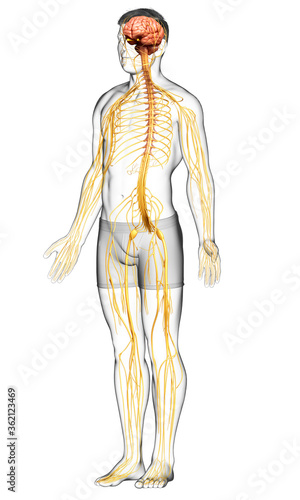anatomy, human, body, three-dimensional, spine, man, physical, nerve, orange, science, skeleton, transparent, x-ray, nervous, central, brain, pain, illustration, cerebellum, cerebra, cord, cross section, lumbar, median