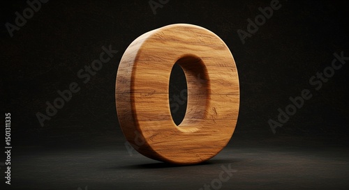 3D Rendered Wooden Number Zero in Warm Lighting Setting Illustration