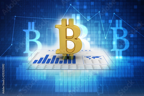 3d rendering bitcoin sign with graph
