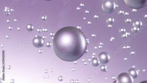 3D rendering Cosmetics Purple Serum bubbles on defocus background. Collagen bubbles Design. Moisturizing Cream and Serum Concept. Vitamin for personal care and beauty concept.