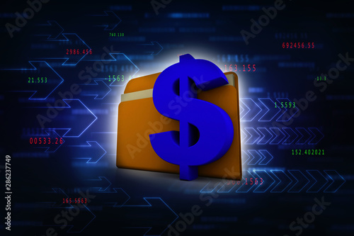 3d rendering Dollar symbol with folder