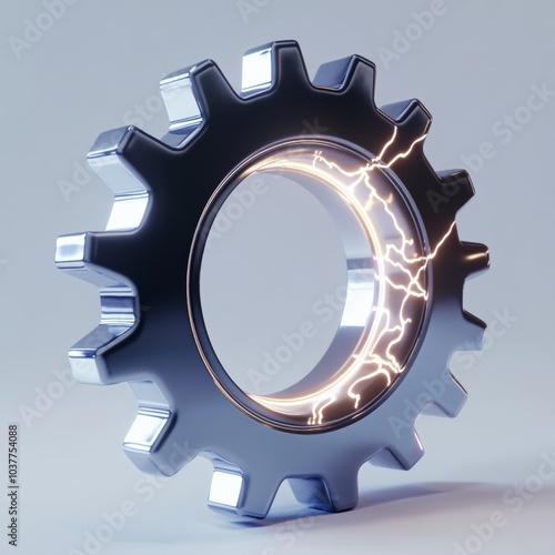 3D rendering of a cog with electric bolts, symbolizing innovation and technology, isolated against a clean background