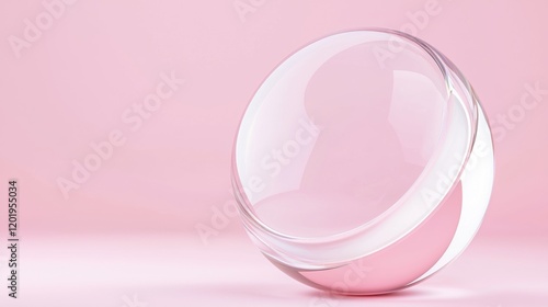 3d rendering of a spherical object on a pink background. the object appears to be made of transparent glass or a similar material, with a smooth and shiny surface.
