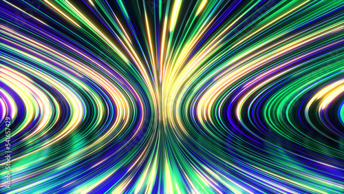 3D rendering of an abstract panoramic neon background with glowing rays