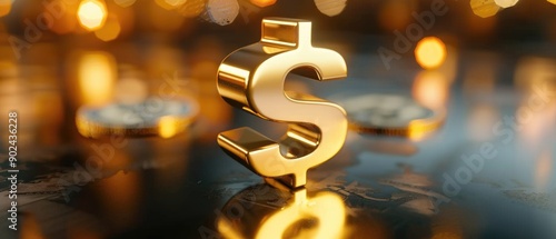 3d rendering of golden dollar sign sitting on top of a table. Perfect for finance and business concepts