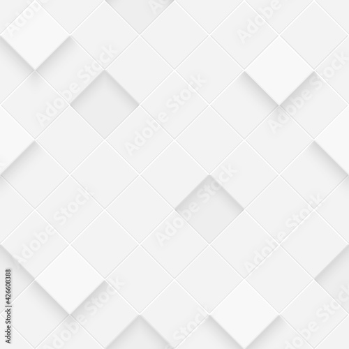 3d seamless cubes pattern. White ceramic tile background. Abstract square diagonal mosaic.