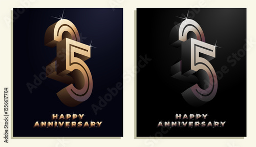 3d Year Anniversary Gold Metal Colour 25th, 25th Happy Anniversary with Elegant Colour, Luxury and Modern.