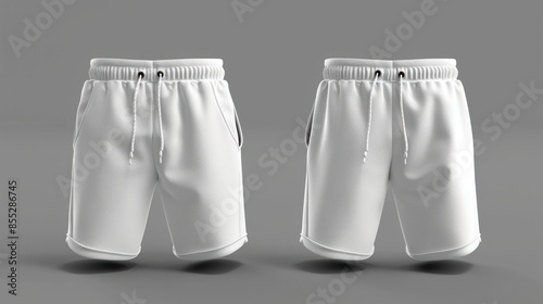 3dimensional illustration of white mens shorts pants trousers with pockets made from polyester material suitable for all activities and sports