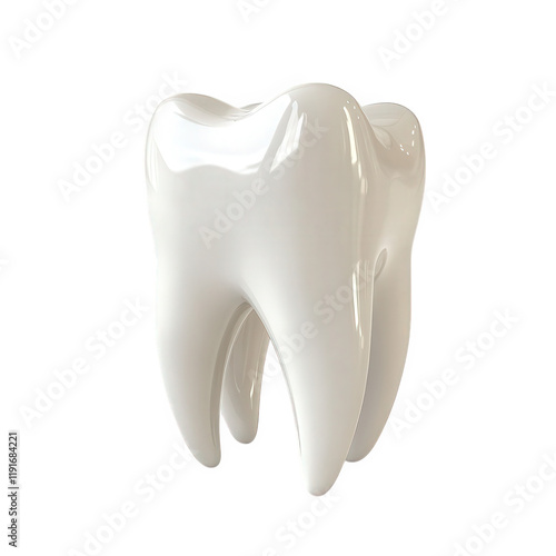 3d-rendered model of a tooth. characterized by its glossy white surface and realistic shape. emphasizing dental health and hygiene the design is simple yet effective for educational or illustrative pu