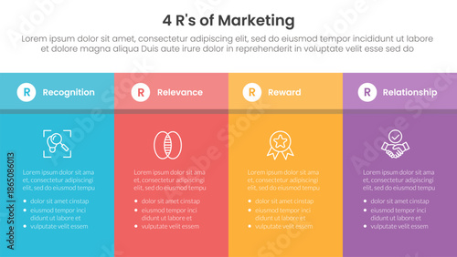 4R of marketing infographic 4 point stage template with fullpage table box with header for slide presentation